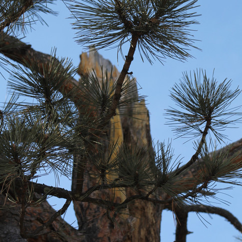 The trail is lined with trees and boulders and a small creek runs along the north side of it. It's quite a lovely trail that's normally heavily populated. However, on this particular day Lani and I pretty much had the trail to ourselves, except for the occasional passer-byer. With my new slower hiking pace, that is on the rare occasions I actually can make it out these days, I had time to really reflect upon my surroundings. At the marvels of Mother Nature. At the glory of what God made. I noticed the colors of the granite that had crumbled to form the old pathway under my hiking-boot clad feet. I noticed the crisp, clear water of the creek peaking out from under the dirt-covered ice. I noticed the ferocity of how the ice cycles clung to the logs that lay across that very same creek as well as the ripples in the ice that signified the captured movement of the flowing water as the temperatures dipped low enough to halt it's progression down the mountainside, if only for a moment in time. But perhaps most importantly, I noticed the trees. I mean really noticed them and how these towering life-providing beings survive in the harshest of living conditions. They are truly a magnificent things when you stop to think about all that they can survive in order to continue to live, and all of the life that they produce and support.